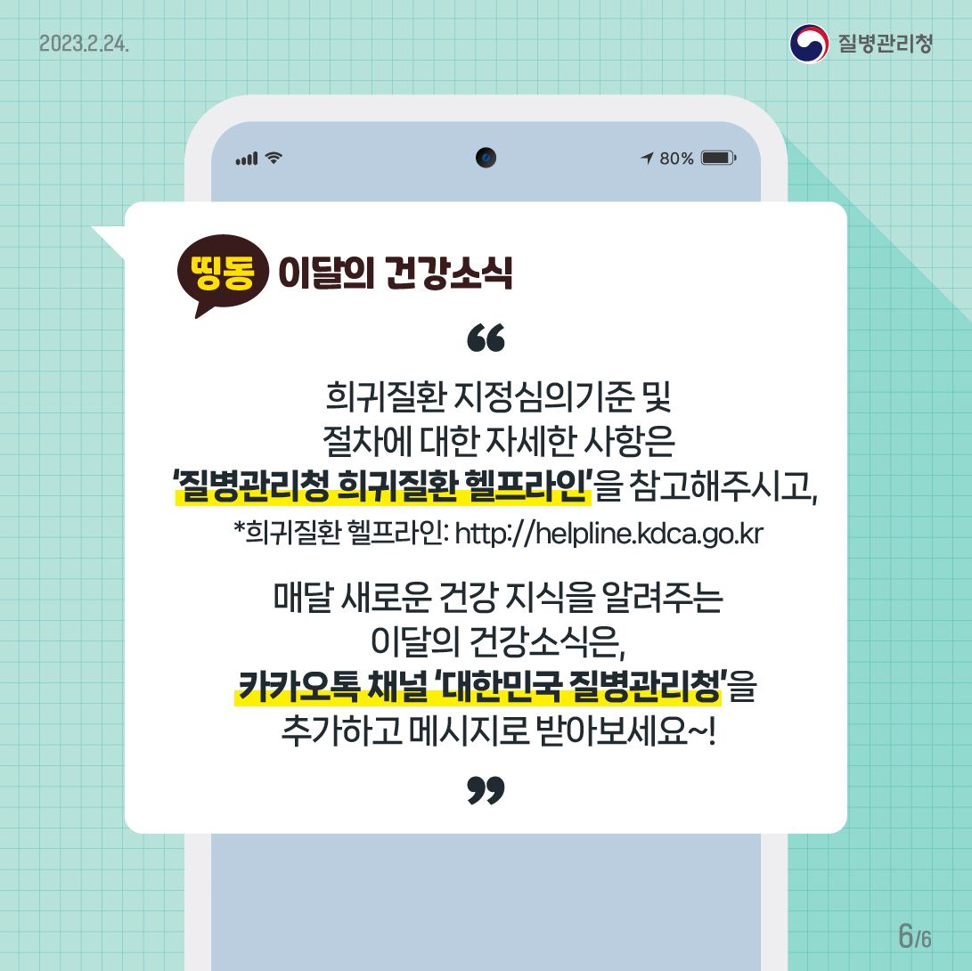 *희귀 질환 헬프라인 : https://helpline.kdca.go.kr